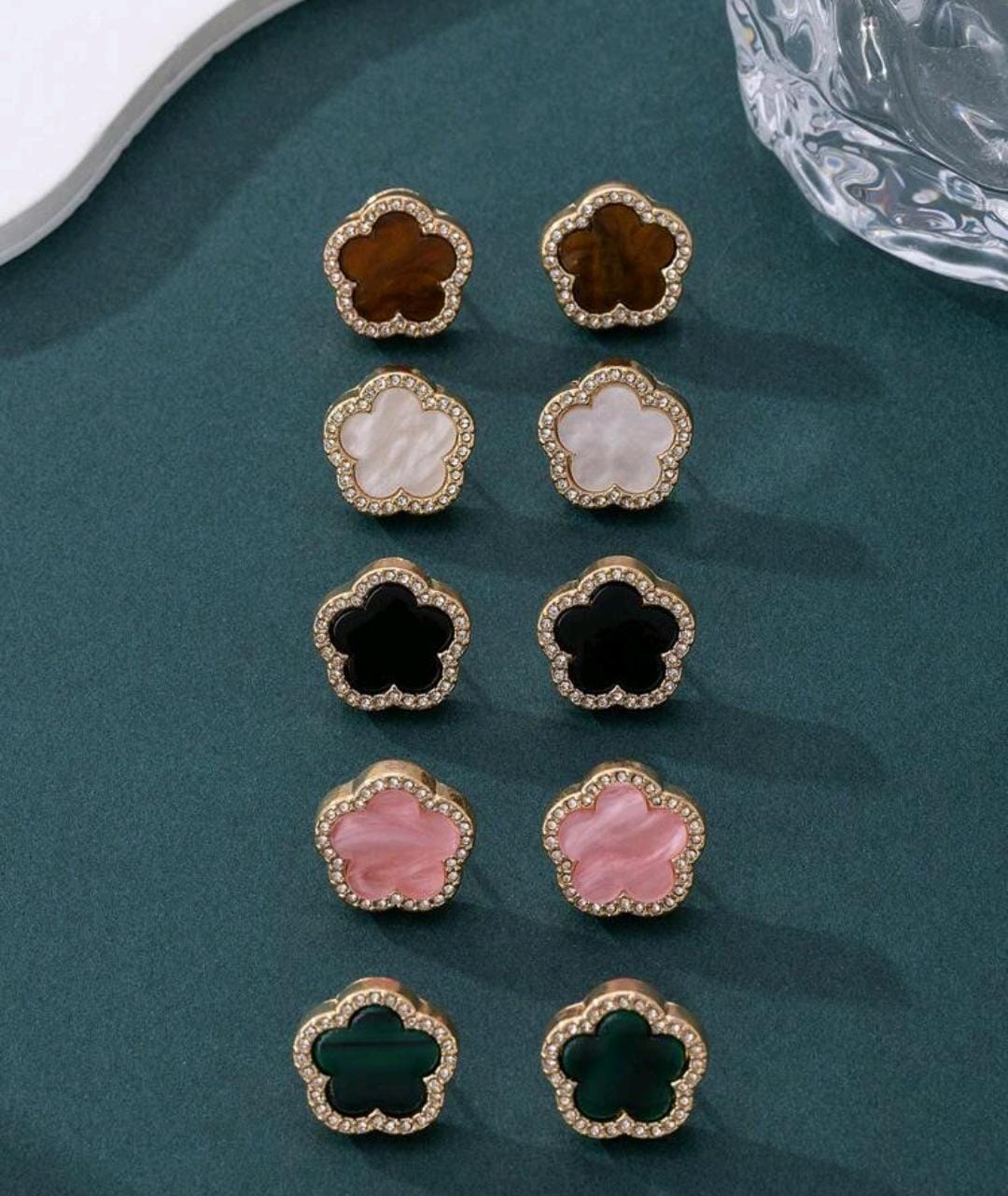 Add sparkle to your everyday look with this 5 pairs luxury rhinestone clover stud earrings set, designed to bring classic elegance and modern charm. Each pair features a beautiful clover shape accented with shimmering rhinestones, making them perfect for both casual and formal wear. Lightweight and comfortable, these earrings are ideal for daily wear, office outfits, parties, dates, and special occasions.